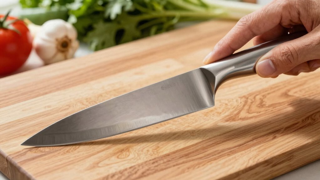 Cutting toward your body considerably increases the risk of injury. When you cut in this direction, a slip or loss of control can cause the blade to cut into your hand or arm. To stay safe, always cut away from yourself whenever possible. Proper blade hygiene is essential; a clean blade reduces the chance of slipping and ensures better control. Regular sharpening techniques keep your knife sharp, making cuts more precise and reducing the need for excessive force. A dull blade is more prone to slipping, which can lead to accidents when cutting toward your body. By maintaining good hygiene and sharpness, and always cutting away, you greatly reduce your risk of injury and keep your kitchen safer.