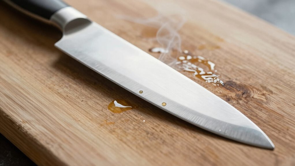 Even with proper care, there comes a point when your kitchen knife may no longer perform as it should. If you notice persistent odors despite regular knife maintenance and scent prevention efforts, it might be time to substitute it. Dull blades require more force, increasing the risk of accidents, and can’t be restored through cleaning alone. Over time, corrosion or deep-set stains can compromise the integrity of your knife, making it less effective and more difficult to sanitize thoroughly. If your knife no longer slices cleanly or has developed a persistent onion smell that resists cleaning, replacing it ensures safety and efficiency. Trust your senses—if your current knife isn’t meeting your needs despite proper care, it’s time to invest in a new one.