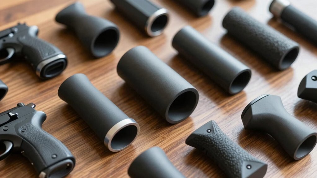 Custom fit handles go beyond basic ergonomic design by precisely matching your hand’s unique shape and size. This tailored approach enhances ergonomic benefits by reducing strain and improving comfort during extended use. When your handle conforms to your grip, you experience better control and less fatigue, which can prevent repetitive stress injuries. Additionally, custom shapes can enhance aesthetic appeal, giving your tools a sleek, personalized look that reflects your style. These handles are crafted to fit your specific needs, making tasks feel more natural and effortless. By investing in a custom fit, you prioritize your comfort and safety, ensuring that every grip feels just right. Ultimately, this personalized approach transforms ordinary tools into extensions of your hand, boosting both performance and satisfaction.