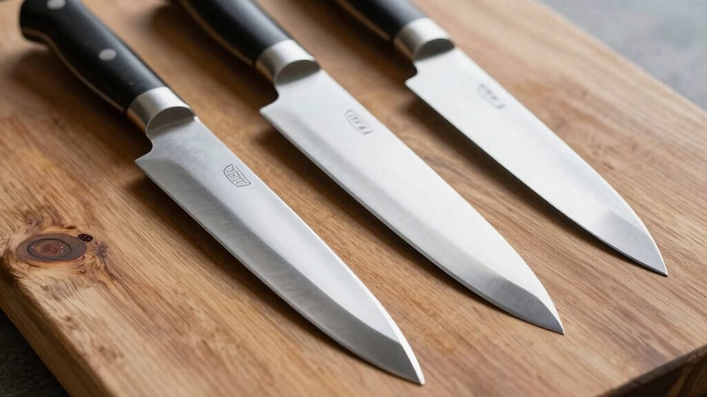 You’ll need specific sharpening tools for these knives. A whetstone or ceramic stone works well for maintaining the sharp edge of your Gyuto, Santoku, and Nakiri. Honing rods can help realign the edges between sharpenings. Avoid using dull or incompatible tools that could damage the blades. Regular sharpening preserves their performance and prolongs their life, so invest in the right equipment and learn proper techniques for each knife type.