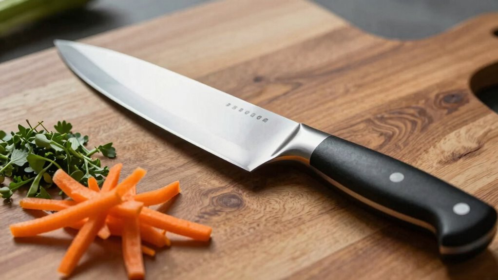 Like a trusty sword in a knight’s hand, a santoku isn’t ideal for heavy-duty chopping tasks. While it’s sharp and nimble, its design isn’t built for the vigorous, demanding cuts that require maximum knife durability. You’ll find a chef knife better suited for heavy-duty chopping because it can withstand more force and last longer through tough tasks. Stick to your chef’s knife for the heavy work, and keep your santoku for precision slicing.
