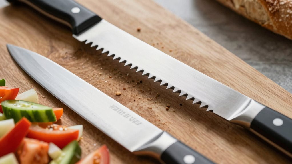 Serrated knives excel when cutting soft items, thanks to their sharp teeth that grip and slice effortlessly. They’re especially great for handling crusty breads without crushing the delicate interior. If you often work with baked goods or soft fruits, a serrated knife can make your tasks easier and neater.