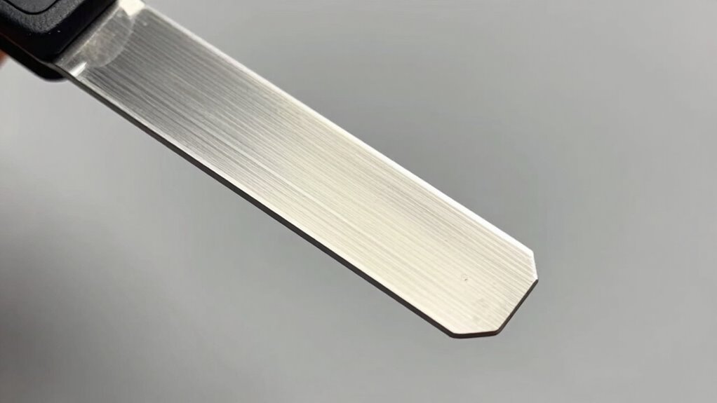 Thin blades can be more prone to breaking because of their blade brittleness, making them less resistant to impact. You might notice they chip or snap easier if you apply too much force or use them on hard materials. However, their edge durability remains excellent when handled carefully. While they’re incredibly sharp and precise, you should treat them delicately to avoid damaging the blade or risking breakage.