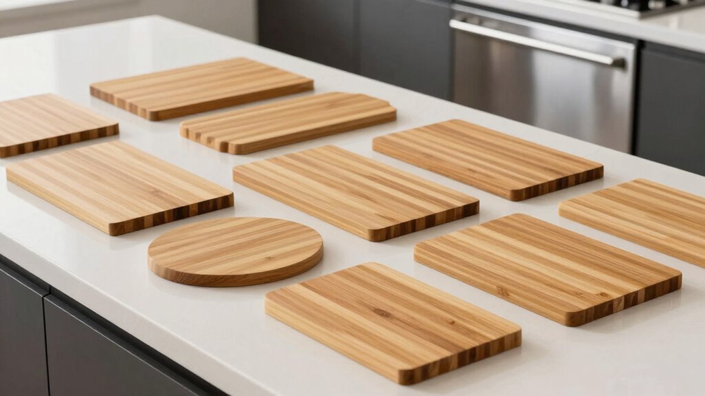 Selecting the right size bamboo cutting board hinges on your available counter and storage space, as well as your cooking habits. If you often prepare large meals or cut big pieces of meat, a larger board (15 inches or more) offers plenty of surface area and efficiency. Conversely, smaller boards (around 8-10 inches) are perfect for quick tasks like slicing fruits or garnishes, helping you save space. Consider boards with handles or hanging holes to make storage easier and keep your workspace organized. Measure your typical food prep tasks and available storage areas to find a size that balances functionality with space. A well-chosen size enhances your workflow without cluttering your kitchen, making your food prep smoother and more enjoyable.