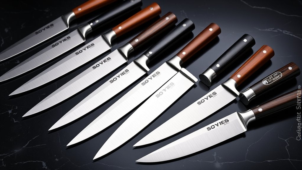 Yes, these knives typically come with warranties or guarantees, giving you peace of mind. Most brands offer a limited warranty covering defects in materials or craftsmanship, often lasting a year or more. I recommend checking each product’s specific warranty details before purchasing. It’s reassuring to know that if anything goes wrong, you’re protected, and the manufacturer will usually provide repairs or replacements to keep your kitchen running smoothly.