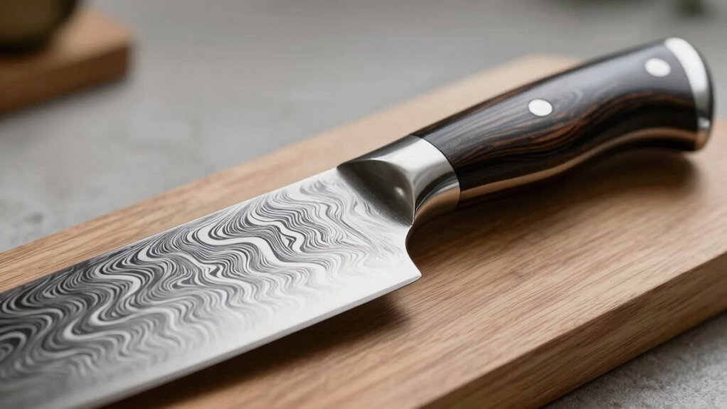 Choosing a Damascus chef knife in the $300 to $500 range means considering how well it will hold up over time. High-quality Damascus blades with HRC ratings of 60-62 resist chipping, rust, and staining, which extends their lifespan. Proper maintenance, like handwashing and regular oiling, helps preserve the layered pattern and prevents corrosion. Forged blades with full-tang construction are more durable and better suited for daily, rigorous use than stamped or partial-tang options. The layered steel not only adds visual appeal but also enhances flexibility and toughness, lowering the risk of breakage. Regular sharpening with the right tools is essential to keep the edge ultra-sharp. With proper care, these knives can maintain top performance for years, making them a worthwhile investment.