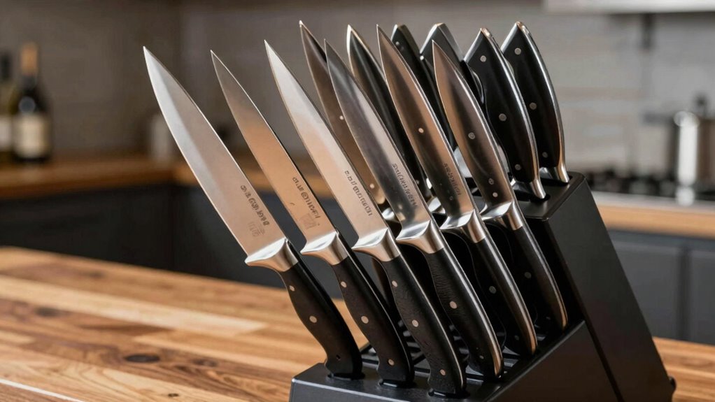 If you want to slice through ingredients like a culinary ninja, go for the Wüsthof Classic Ikon or Global G-835. These sets are absolute game-changers, offering razor-sharp precision and unmatched durability. I swear, they turn ordinary cooking into an epic masterpiece. Chefs rave about their balance and craftsmanship. Trust me, investing in these will elevate your kitchen skills to legendary status overnight.
