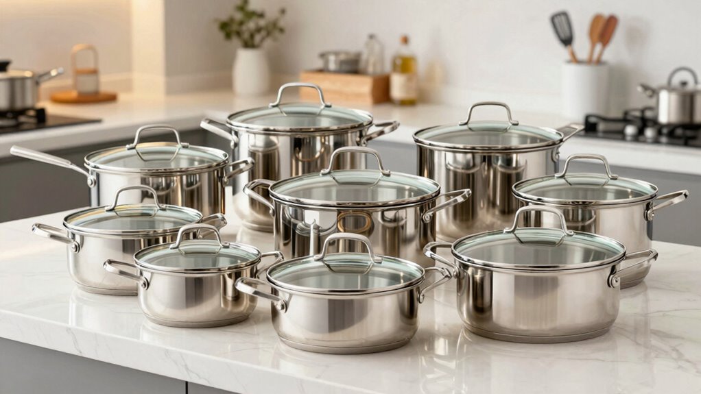 If you’re exploring options, you’ll find plenty of excellent tri-ply stainless steel cookware sets under $800. While each offers unique benefits, I believe you’ll discover one that subtly elevates your cooking experience without stretching your budget. Trust your instincts and consider what feels right for your kitchen style and needs. After all, the perfect set should feel like a seamless addition to your culinary journey, quietly enhancing every meal you create.